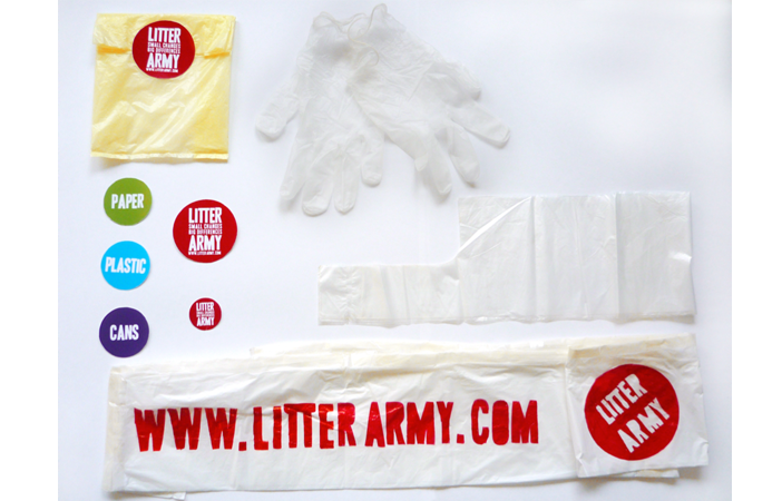 This was a project set by an outside designer. The brief asked to brand a clean up crew - the Litter Army - to help with fly tipping and littering, which had become a big problem in urban areas. The Litter Army also needed to promote an event which would encourage families to come along and help clean up the area in a fun way. My final idea was to do a Rubbish Hunt. The adults and children would be sorted into teams, Paper, Plastic and Cans and each team has their own bin. They are led by a member of the Litter Army and they work together to find the correct rubbish and put it in the correct bin. The packs include a sash, a bag, gloves, Litter Army stickers and bage and one team sticker.