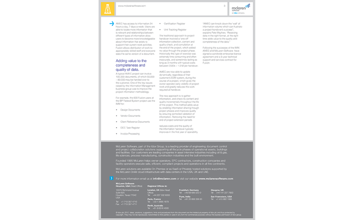 McLaren Software are a company focusing on Engineering Document Management, Control and Collaboration Solutions. I currently help out with brochure layouts, type setting and occasionally creating brochure logos.